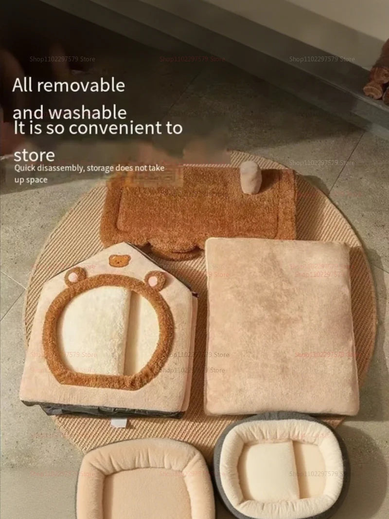 Nid pour chat quatre saisons 2025, lit chaud pour chien, coussin doux amovible, abri d'hiver confortable pour petits chiens et chats