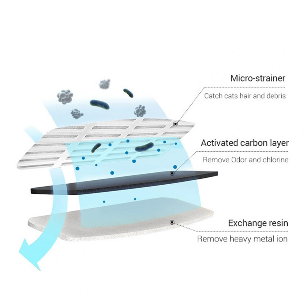 Fabriqué en charbon actif haute densité et à haute teneur, ce filtre pour fontaine à eau pour chats filtre les poils et les résidus, absorbe les odeurs, adoucit l'eau, préserve efficacement la qualité de l'eau et augmente la teneur en oxygène.
